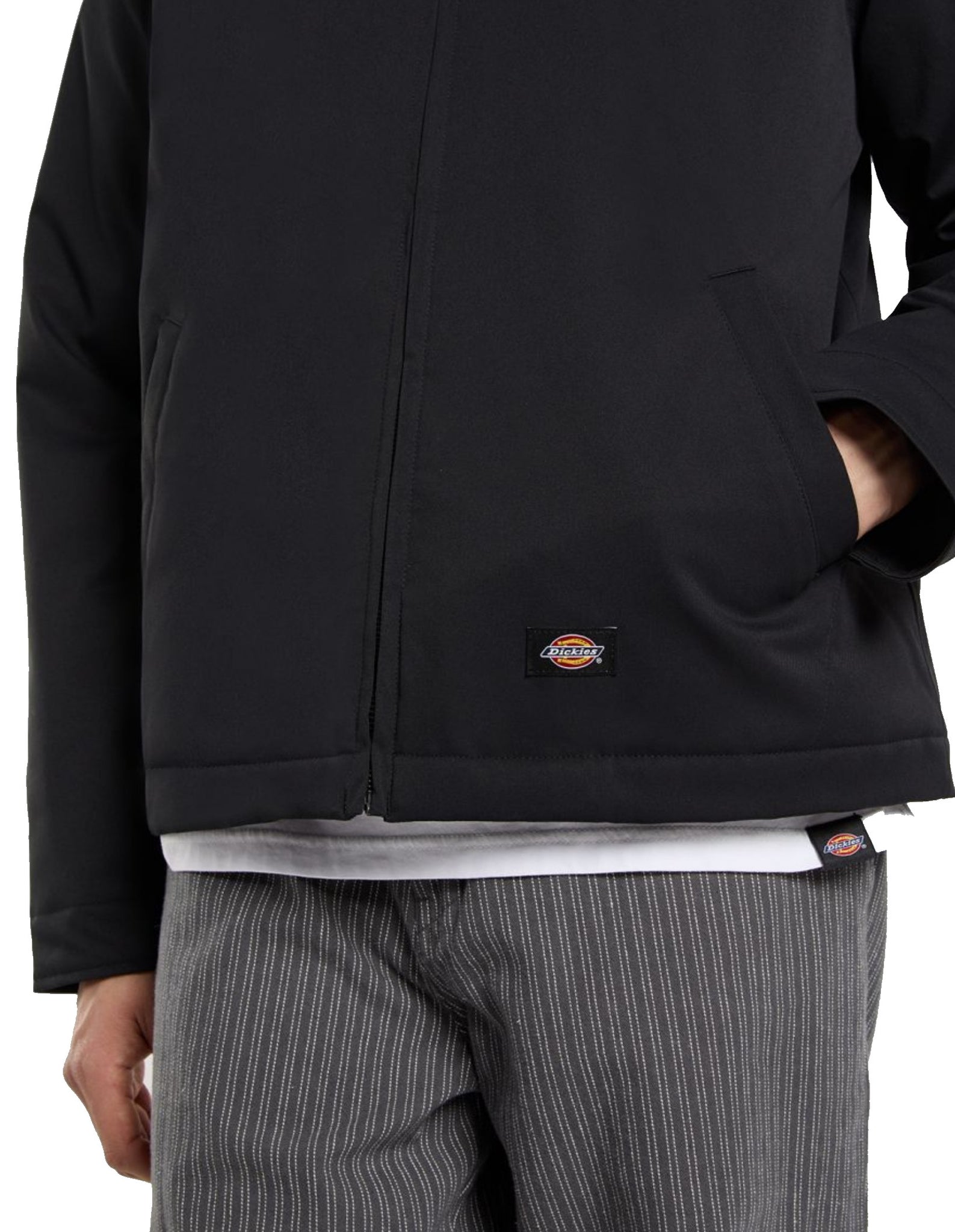 Elle dispose également d'un ajusteur d'ourlet interne pour la forme, d'une fermeture éclair entièrement en métal, d'une poche plaquée pratique sur le bras et de notre étiquette Dickies cousue au-dessus de l'ourlet.