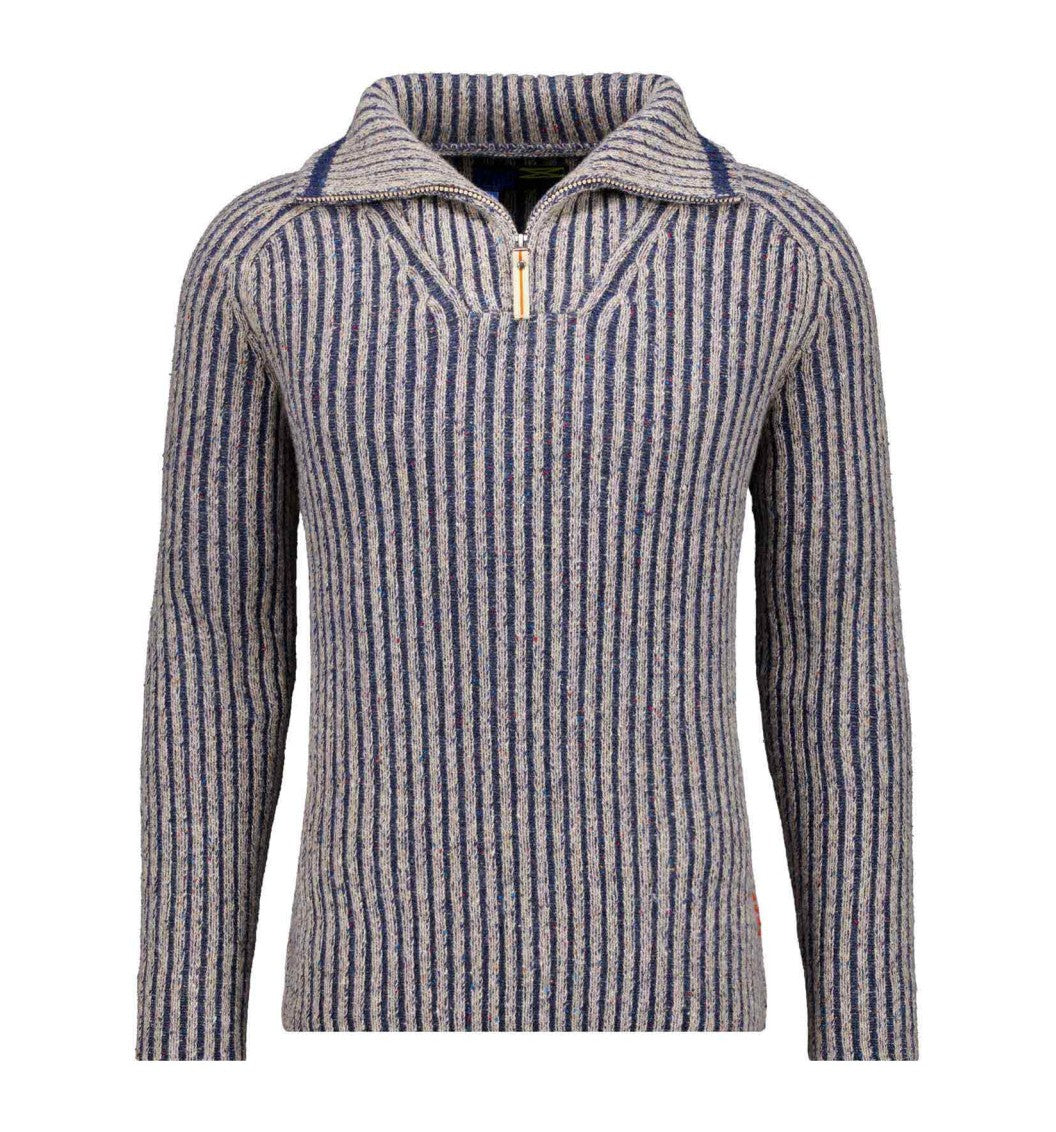 À l'origine, ce pull était conçu comme un vêtement fonctionnel. Il doit résister aux vents violents, à l'air humide et au froid glacial. Pas forcément, car notre nouveau pull est extrêmement séduisant grâce à son tricot côtelé bicolore.
